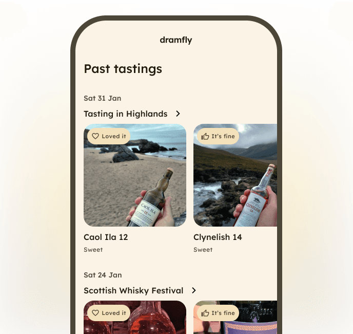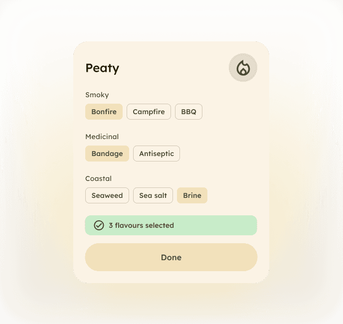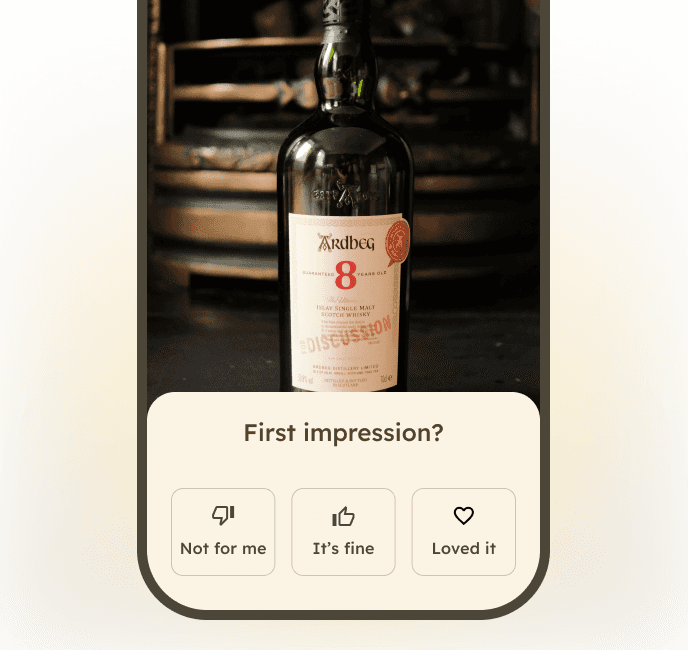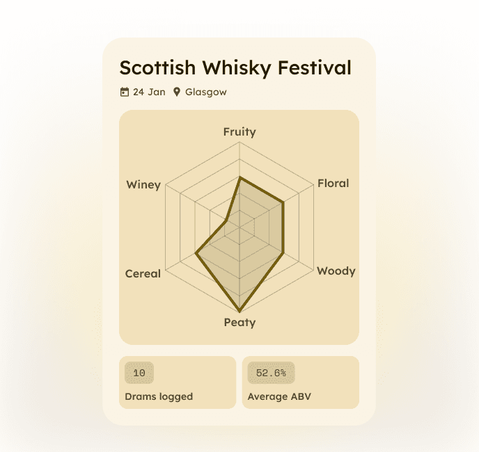 Your whisky companion for festivals and tastings. Capture tasting notes in seconds, map your flavour profile, and remember what you tasted, forever.